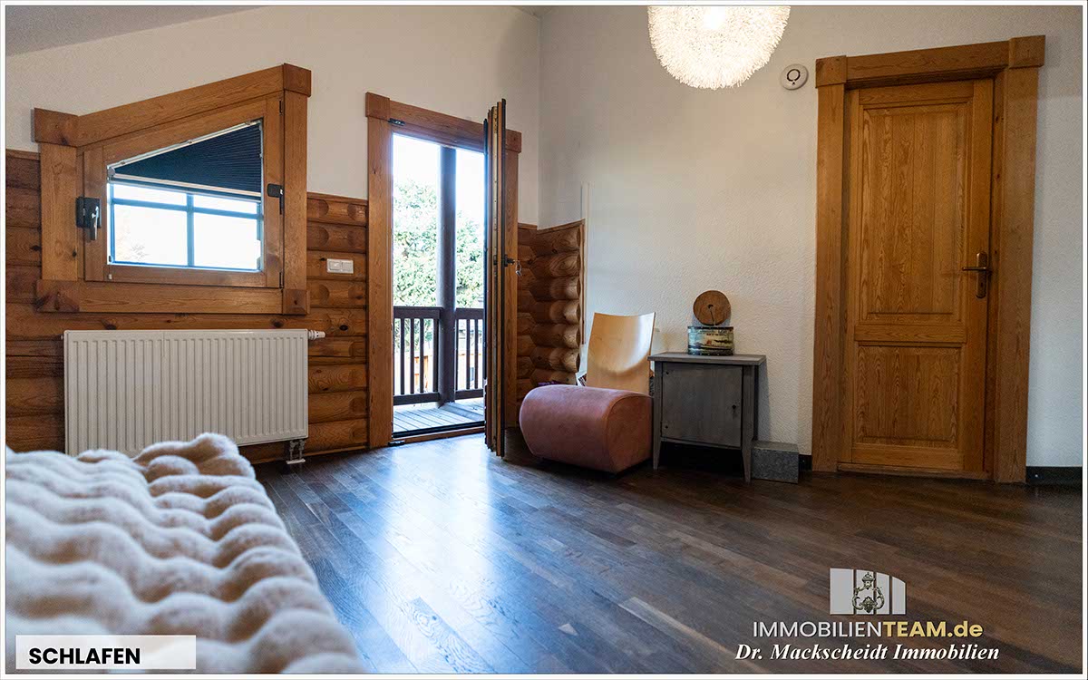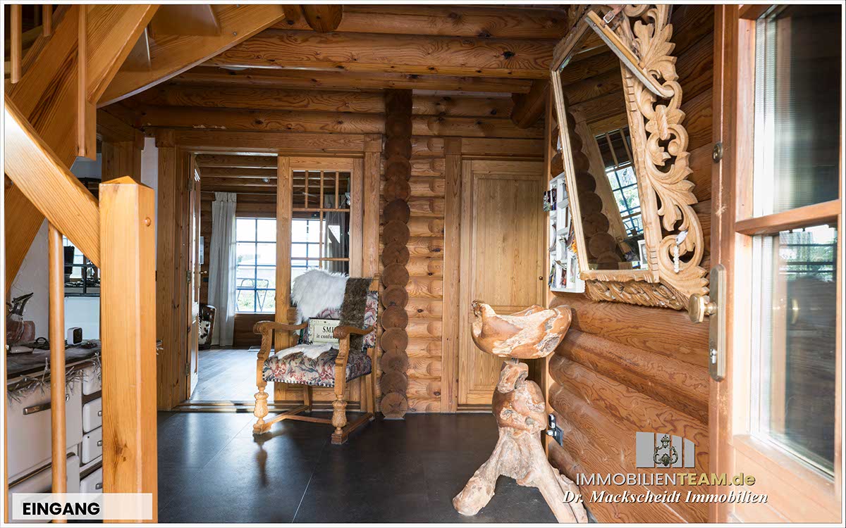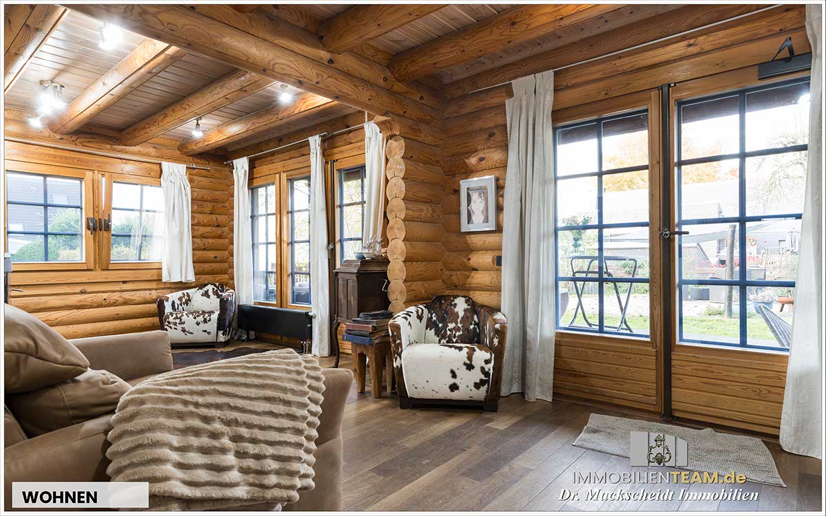 massive Blockbauweise aus Polarkiefer, sehr gutes Raumklima, energieeffiziente Konstruktion (nahe Niedrigenergiehaus), zwei Wohneinheiten: Hauptwohnung + Einliegerwohnung, Kaminofen im Wohnzimmer, moderne Küche (BJ 2021) mit großem Gasherd, Gäste-WC im Erdgeschoss, Bad im Dachgeschoss (erneuert 2023), teilüberdachte Holzterrasse und große Loggia, einbruchhemmende Verglasung, abschließbare Fenstergriffe, Videoüberwachungssystem, Carport und Gartenhaus, ruhige Sackgassenlage nahe der Rheinaue Walsum. Hinweis: Die vollständige Ausstattungsliste finden Sie im Exposé.