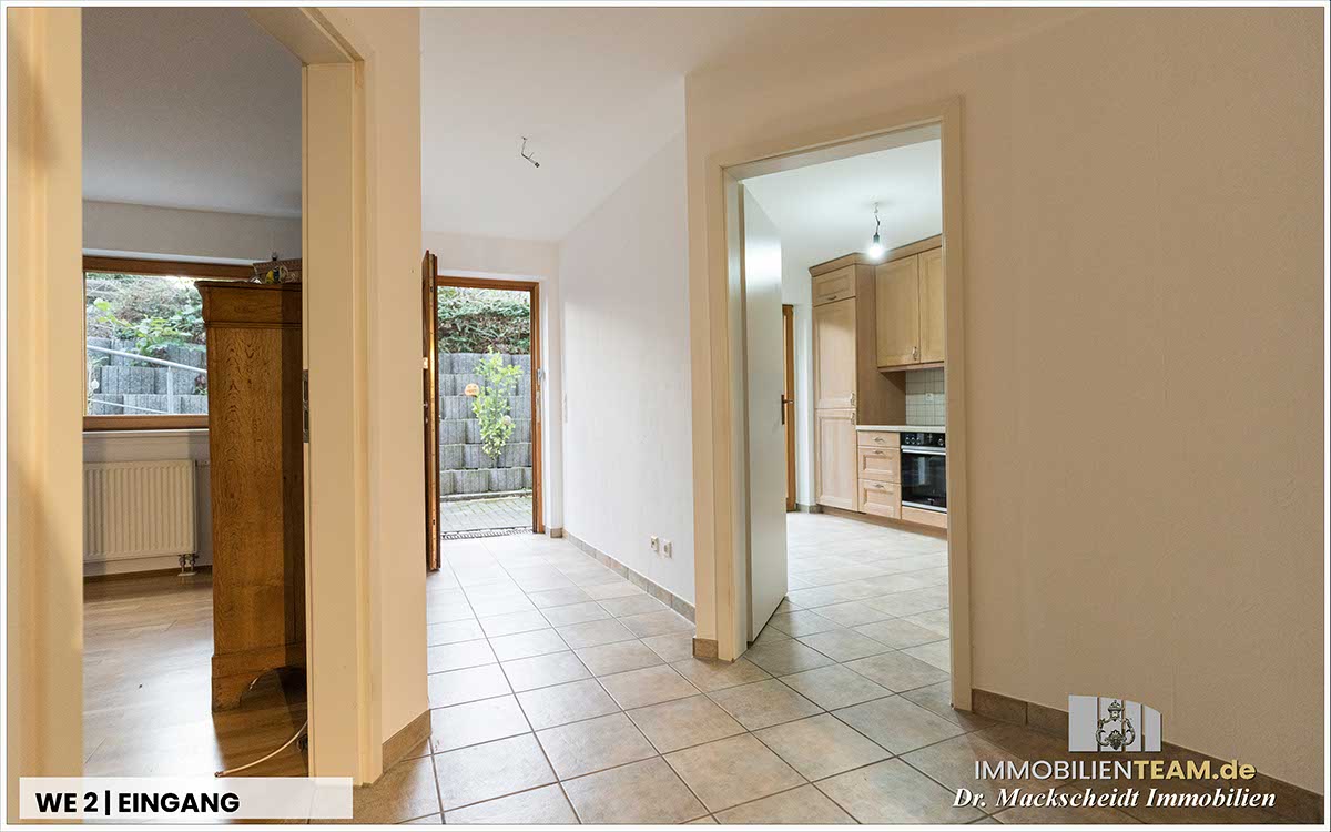 Untergeschoss – WE2 ca. 68 m²: Wohnraum, Schlafzimmer, Küche mit Terrassenzugang, Bad, Gäste-WC, Flur Eigener Eingang und eigene Terrasse