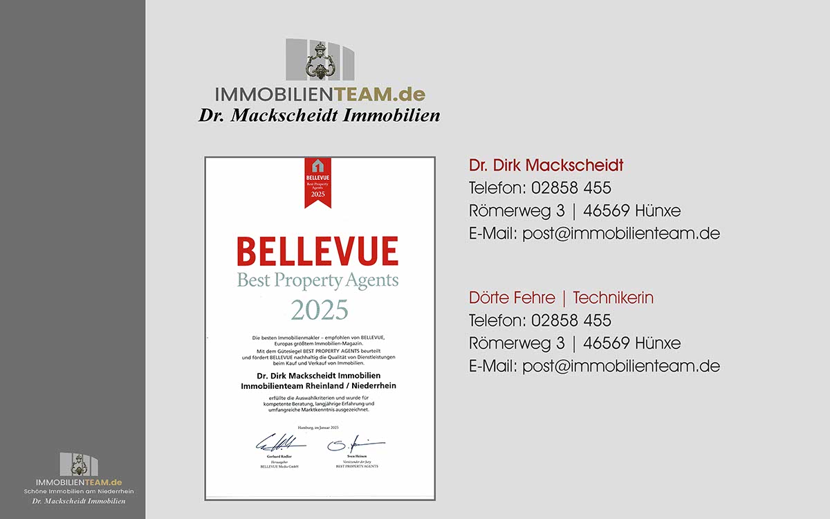 Verkehr & Erreichbarkeit: Alt-Walsum ist trotz seiner ruhigen Lage hervorragend angebunden: A59 mit schneller Anbindung Richtung Duisburg-Zentrum, Ruhrgebiet und Niederrhein / B8 als regionale Verkehrsachse / gute ÖPNV-Anbindung durch mehrere Buslinien. Kurze Wege nach Walsum, Vierlinden und zur Stadtgrenze. Damit verbindet der Standort eine verkehrsarme Wohnlage mit einer sehr guten regionalen Erreichbarkeit.