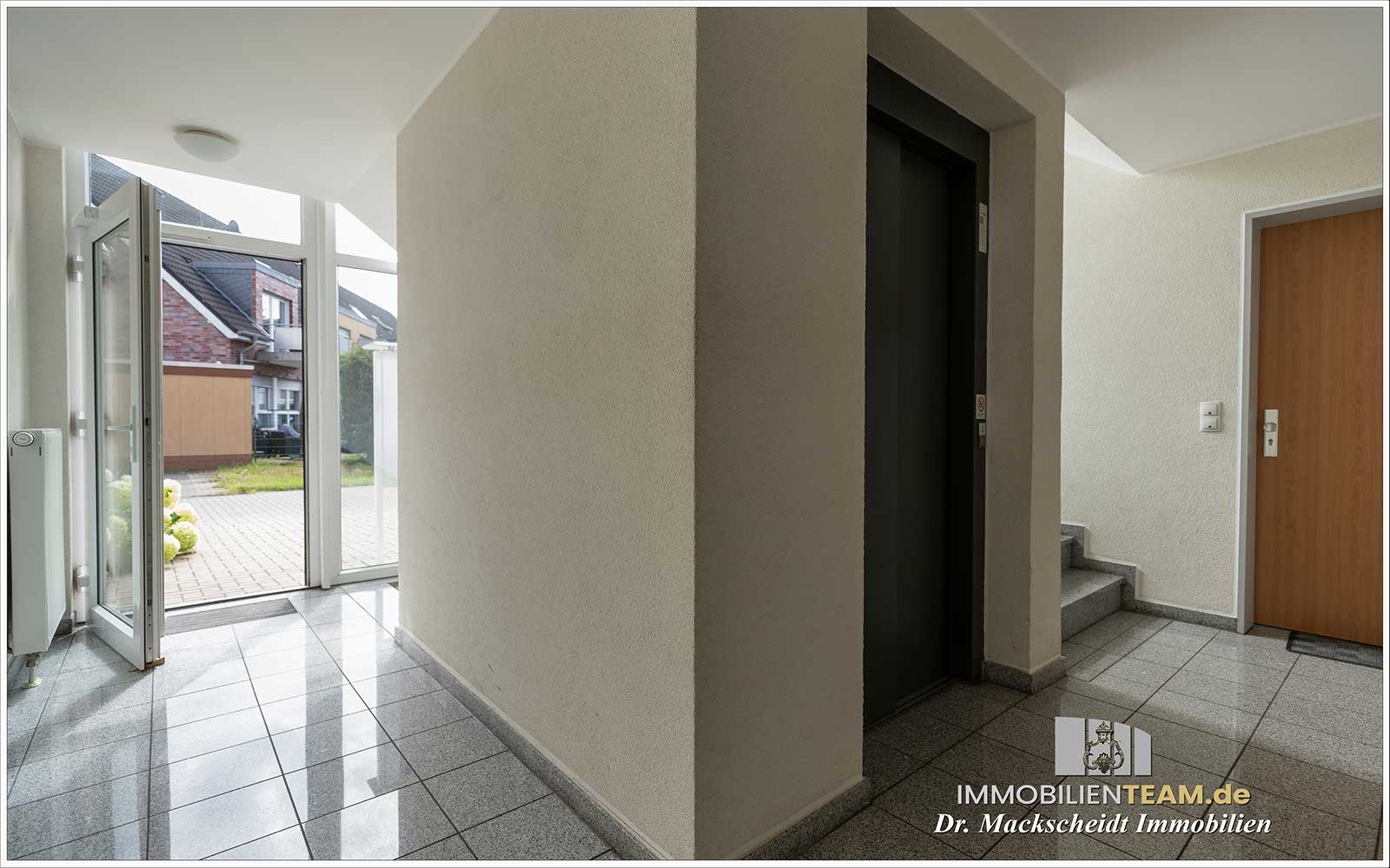 Der Hausflur? Hell und sauber. Der Aufzug fährt bis in die Tiefgarage.
